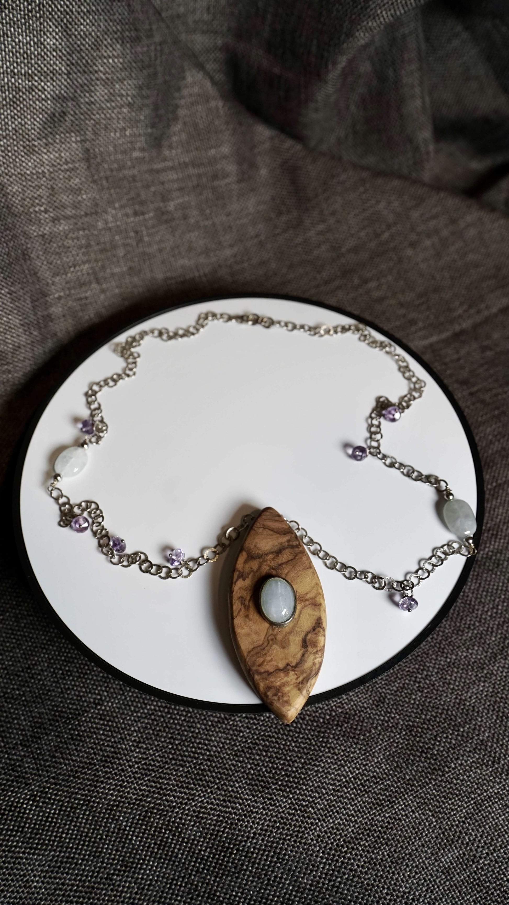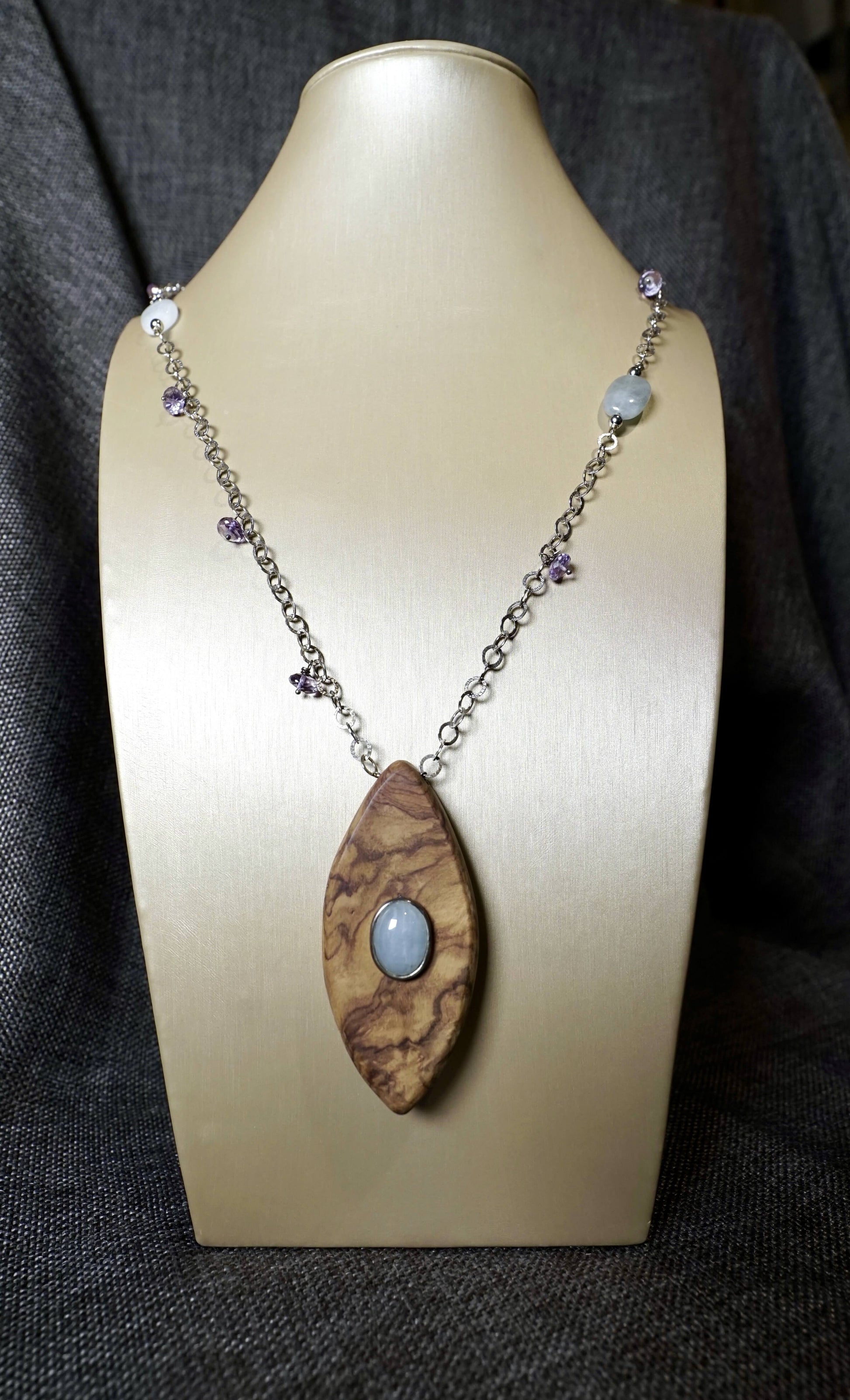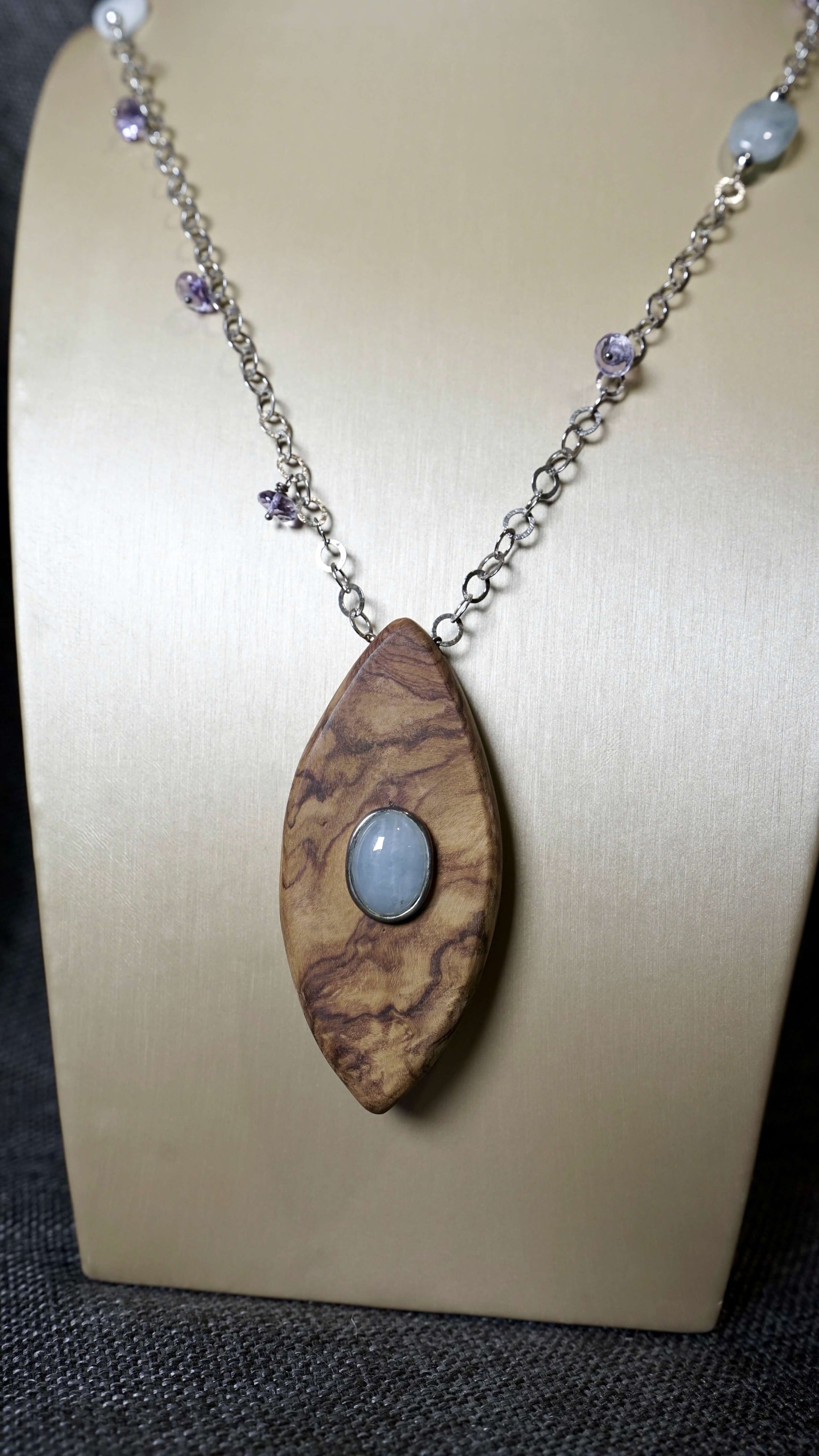 COD:TGU0008 – Collana- Argento 925, acquamarina, ametista, legno d’ulivo