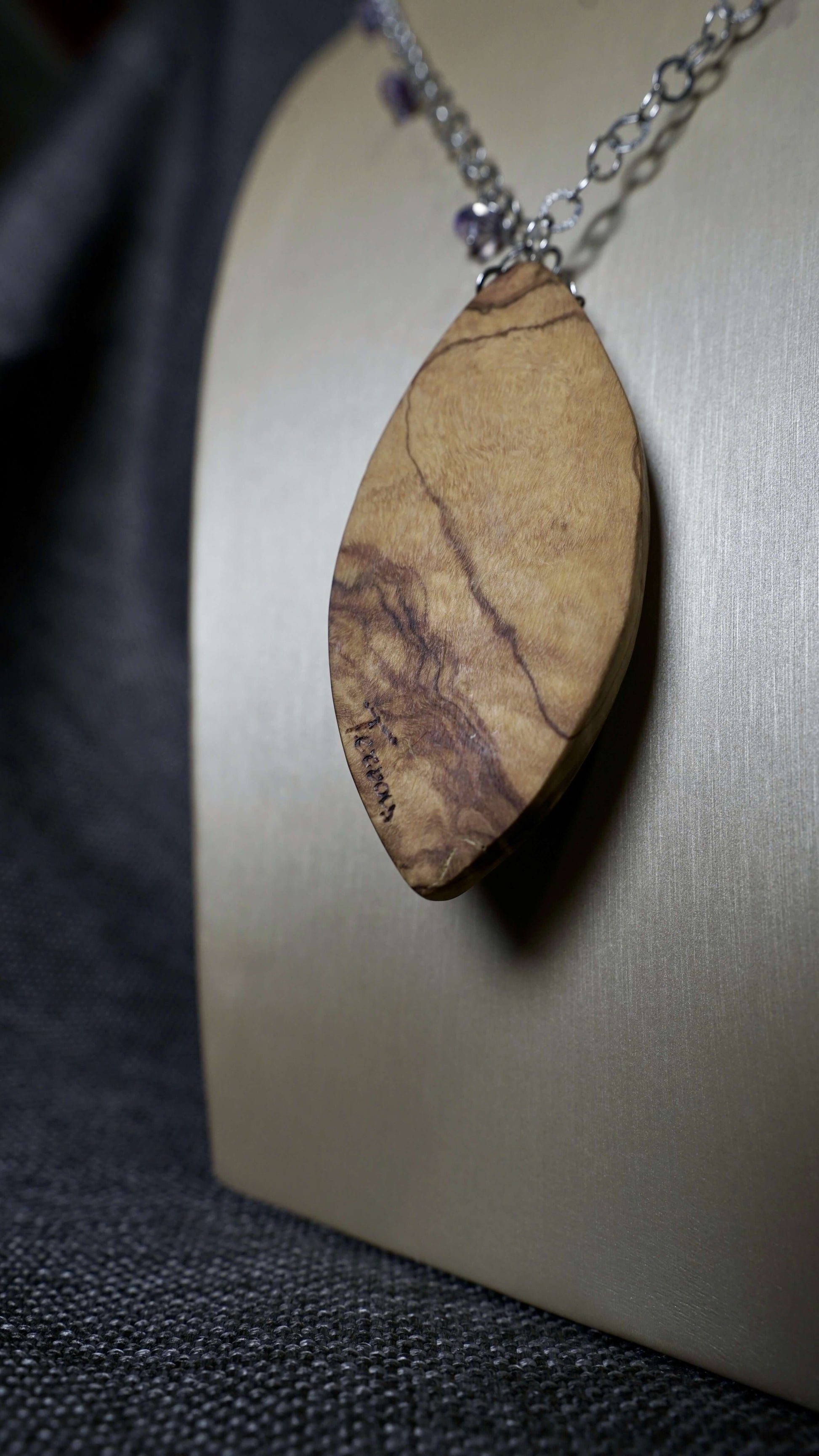 L’unione tra acquamarina e ametista favorisce introspezione e intuizione, mentre l’ulivo e l’argento 925 radicano l’energia e la rendono manifesta.