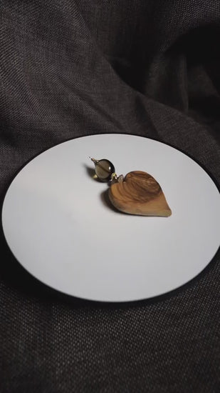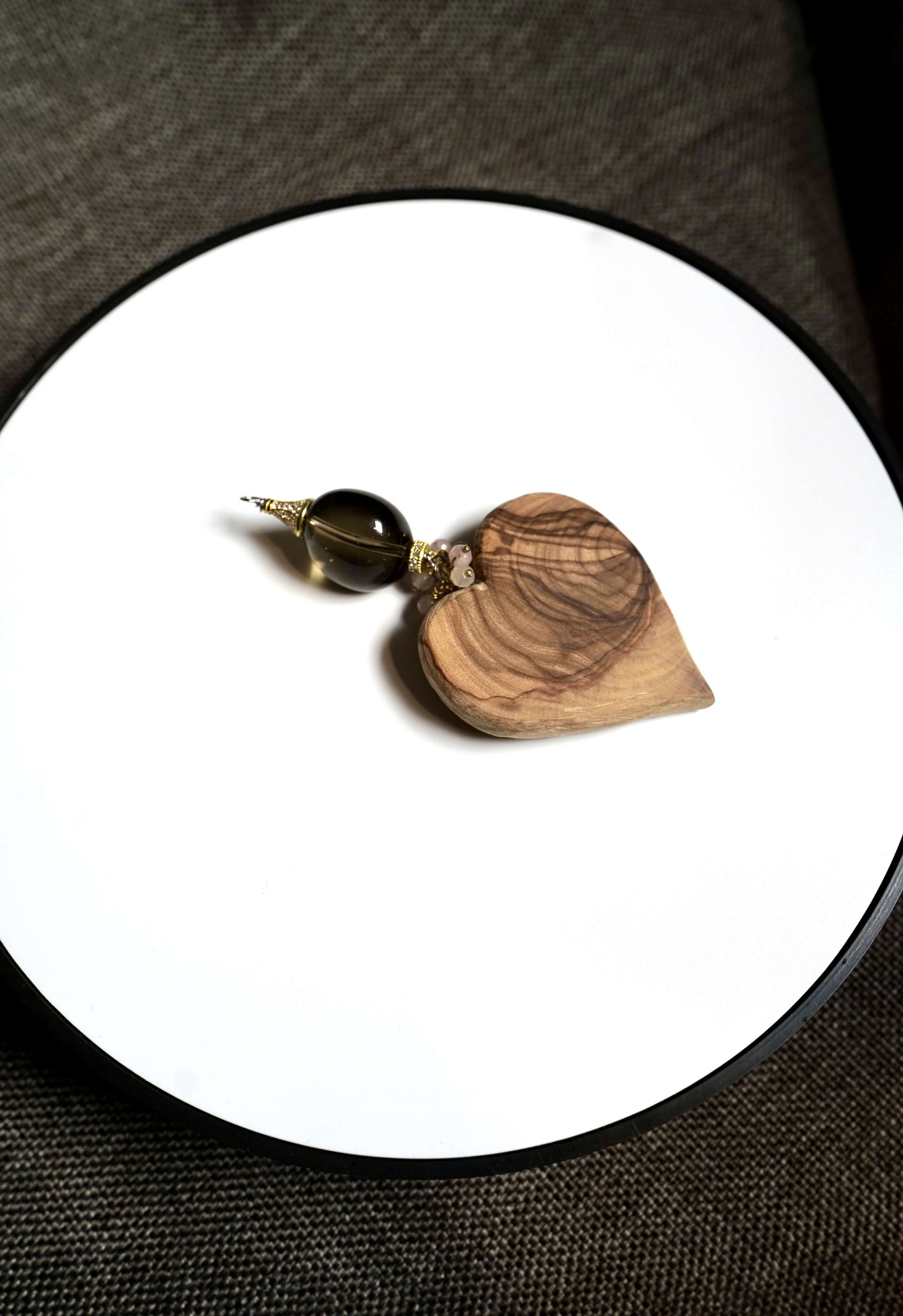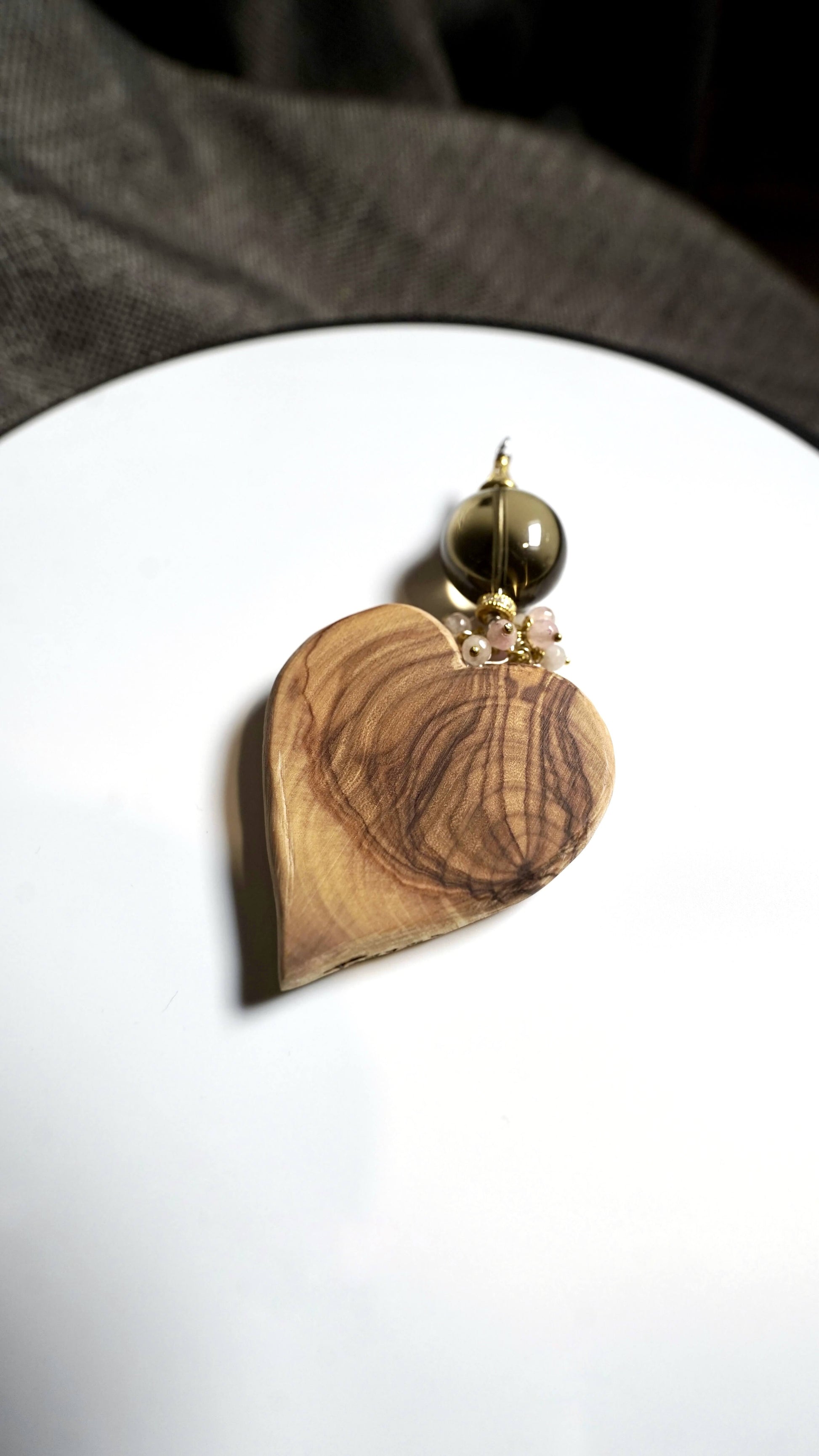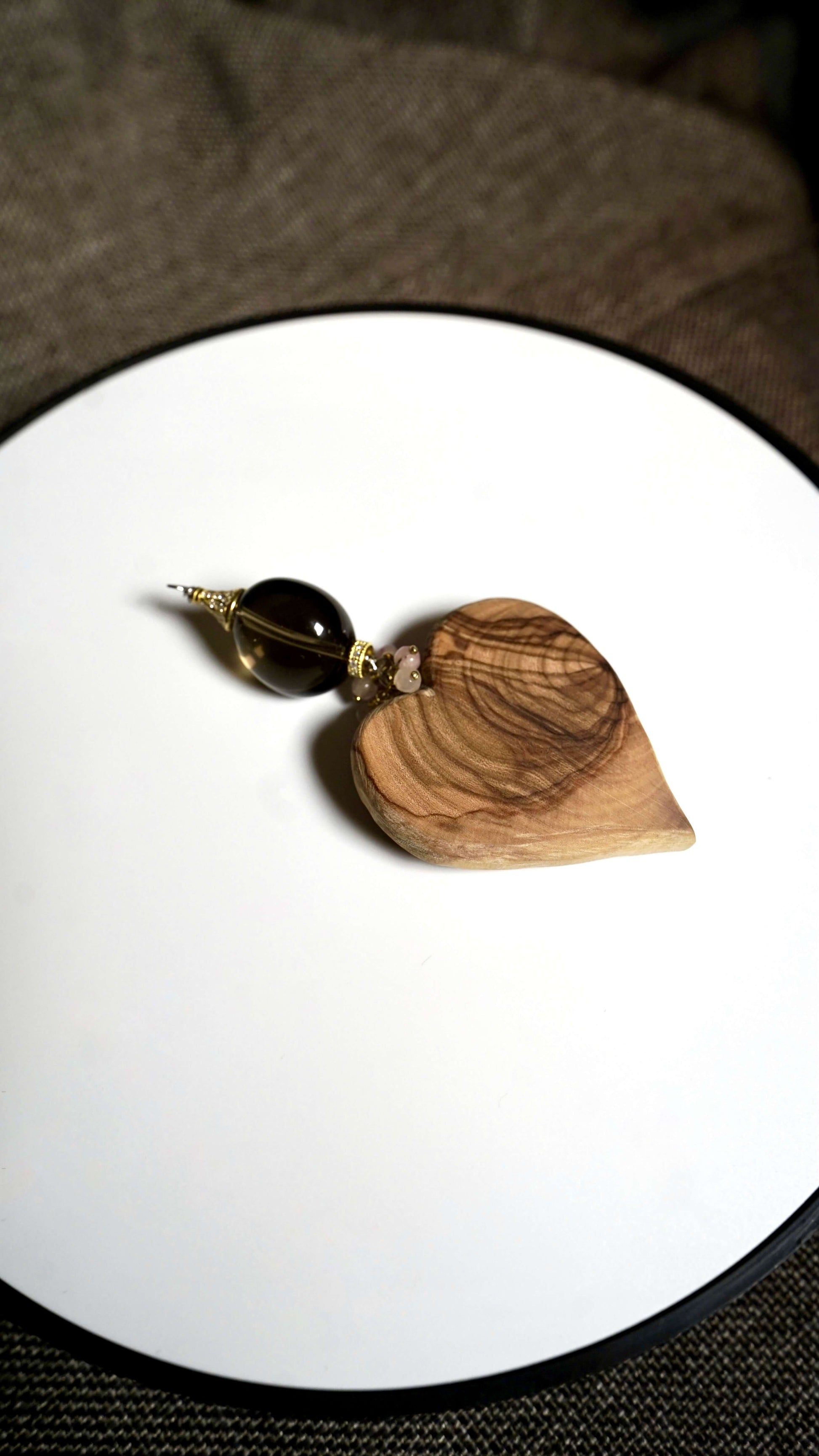 Le venature del legno d’ulivo racchiudono saggezza antica, mentre il quarzo fumé e l’agata offrono centratura e protezione.