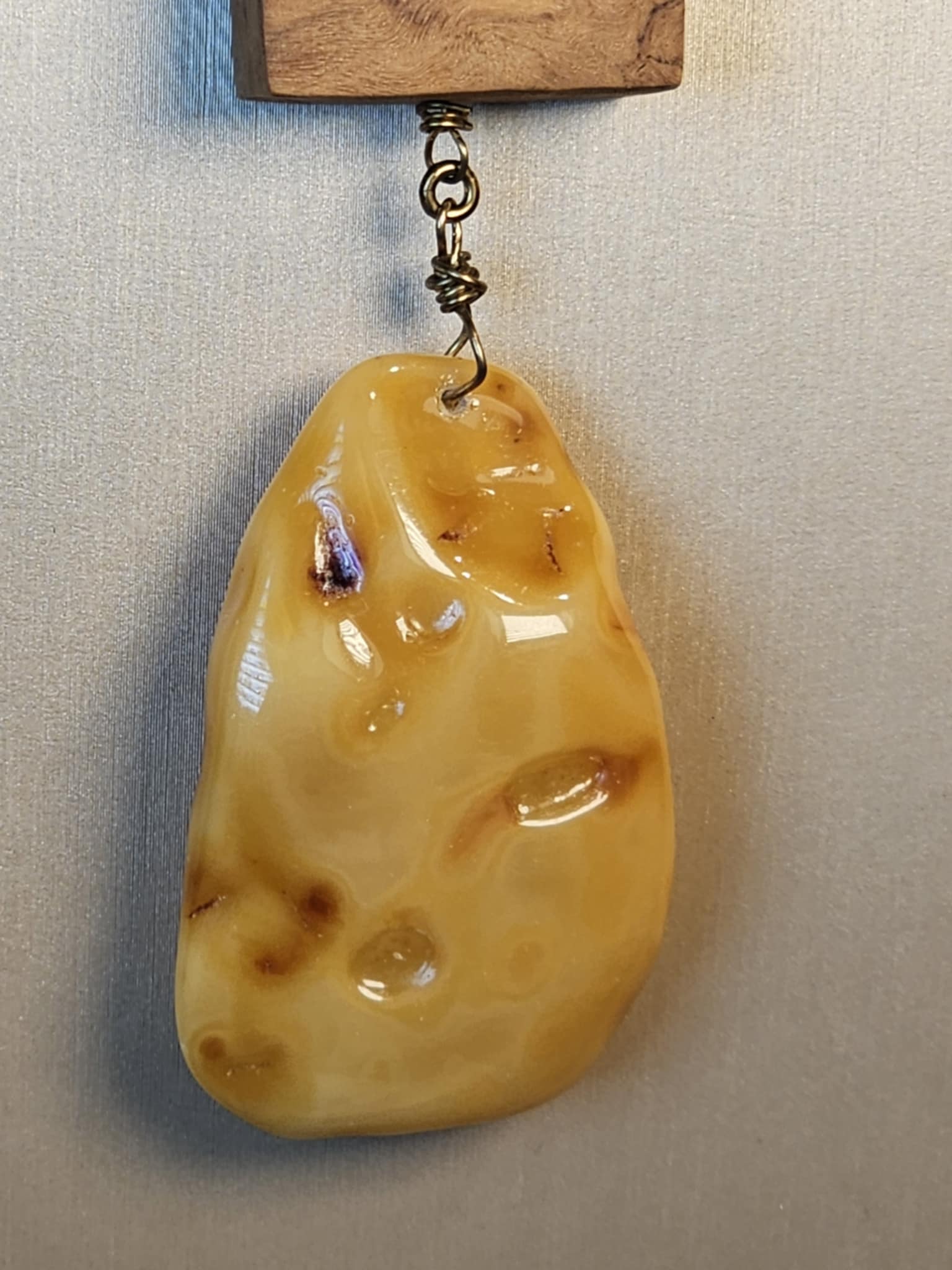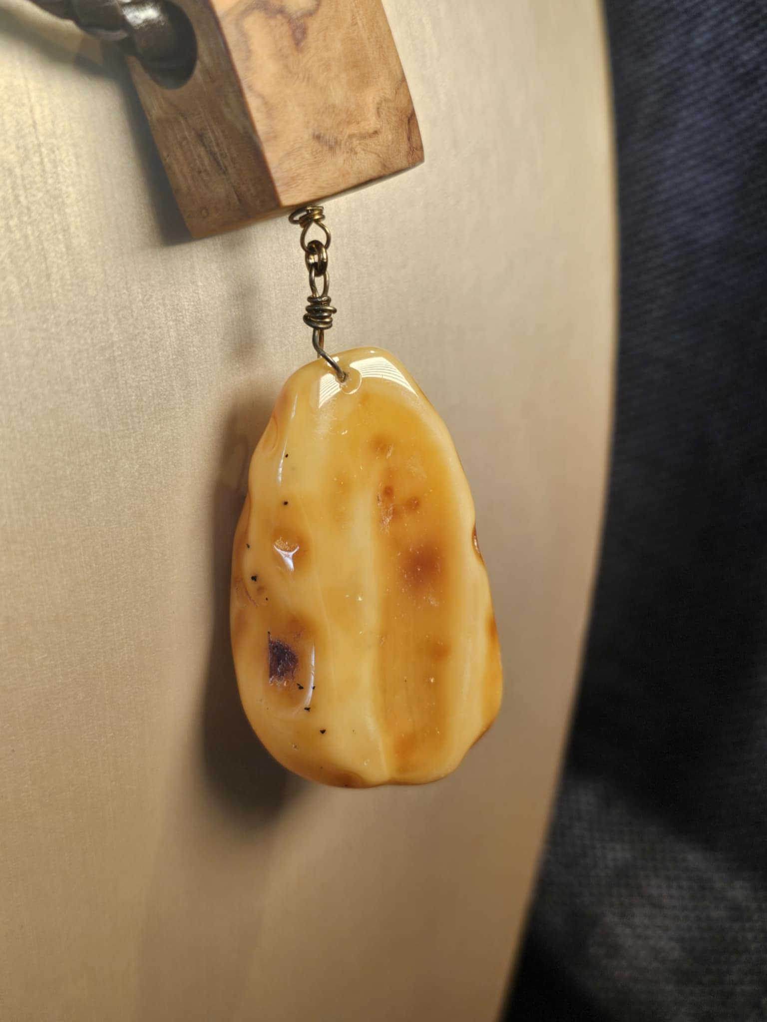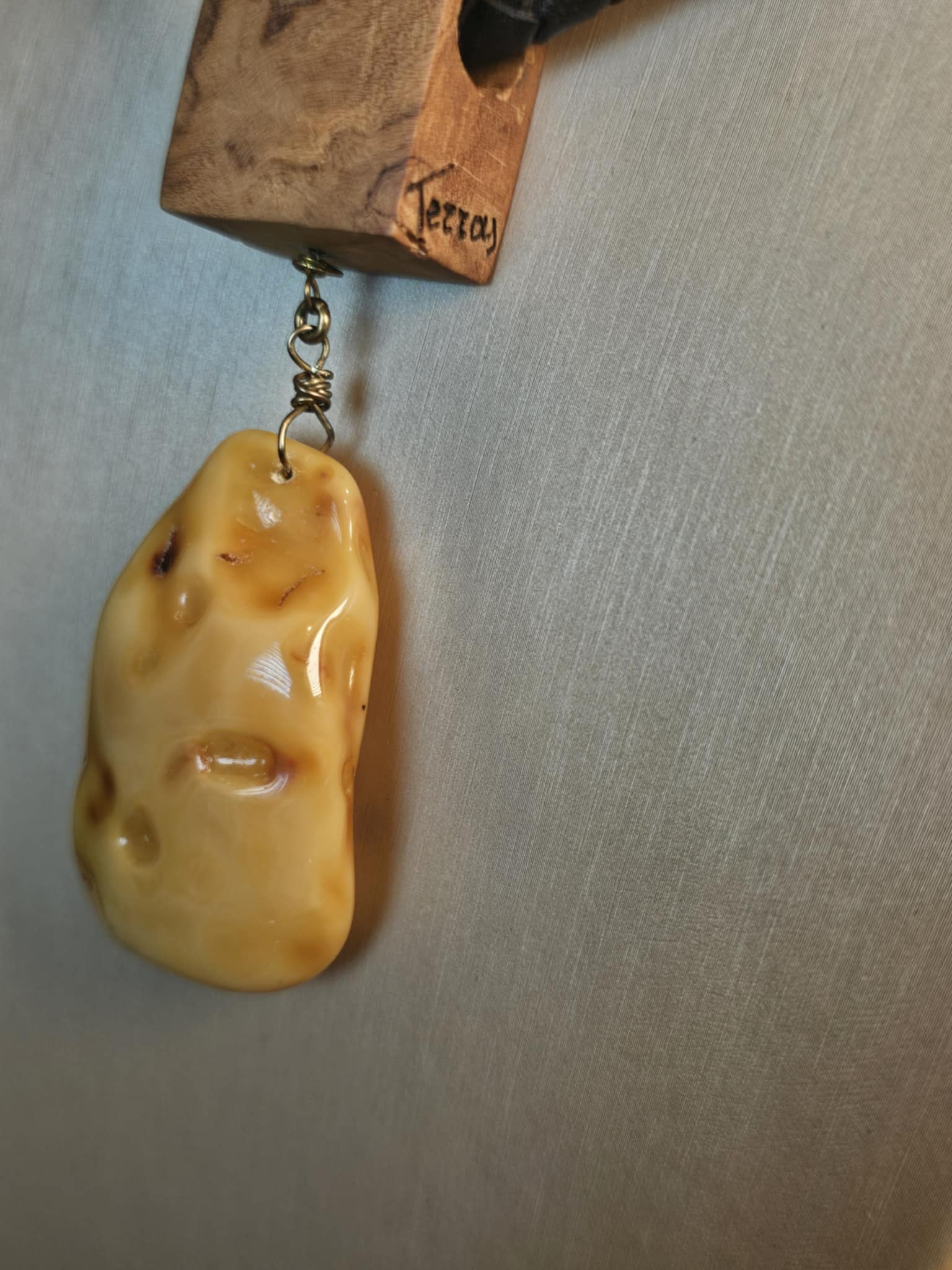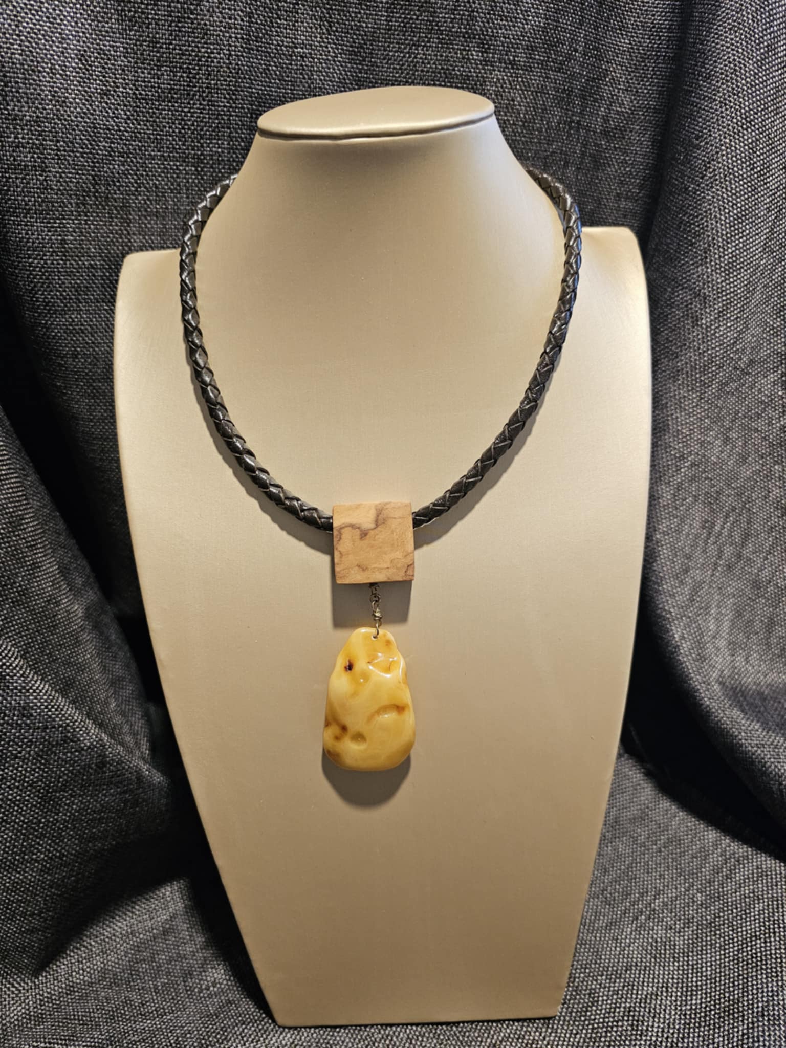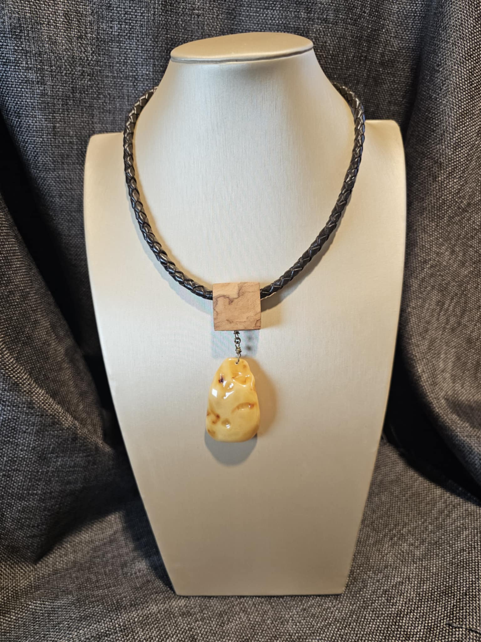 COD: TGU0002- Collana – Legno di Ulivo, Ambra, Cuoio e Argento 925